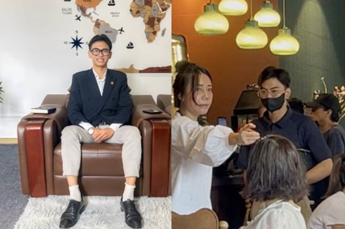 Trước đó, chiều 17/9, Vũ cùng “tổng tài” Thiên và một số người vào quán cà phê trong khu đô thị Times City, phường Vĩnh Tuy. Tiệm có quy định “không hút thuốc lá” và đã dán biển cảnh báo. Tuy nhiên, Thiên (mặc comple, áo sơ mi, đeo cà vạt) hút tẩu thuốc khi ngồi nói chuyện.