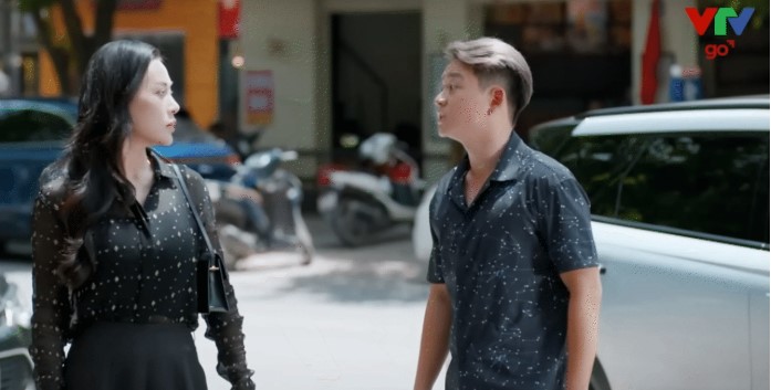 Đầu tiên phải kể đến chiếc áo sơ mi đen vải voan mà Mỹ Anh mặc trong nhiều phân cảnh quan trọng. Ấn tượng nhất là lúc Mỹ Anh buộc tóc, bước vào lấy lại sự công bằng khi. con trai cô bị bắt nạt. Mỹ Anh kết hợp sơ mi voan màu đen điểm thêm chi tiết lấp lánh cùng quần âu đen, vừa chỉn chu vừa tôn dáng.
