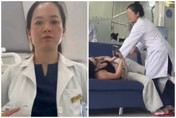 Thời điểm chị T. bị bác sĩ Chinh hành hung (Ảnh cắt từ clip).