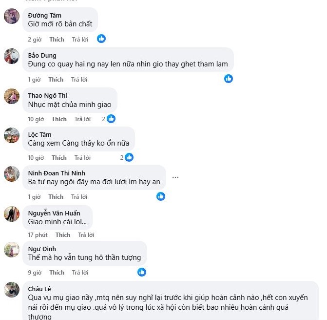 Thái độ của bà Giao khiến nhiều người bất ngờ và bức xúc. Trước đó mọi người thương bà và ông minh bởi sự chất phác, hiền lành của 2 ông bà. Nhưng giờ được nhiều người giúp đỡ, bà Giao lại trở nên ngoa ngoắt, đanh đá và luôn nghĩ tới lợi ích bản thân. Ai cũng ngán ngẩm không muốn CĐM giúp đỡ ông bà thêm nữa. Nhiều người khuyên chủ thầu không cho ông bà đồng nào nữa, số tiền đó để mà nuôi vợ con.