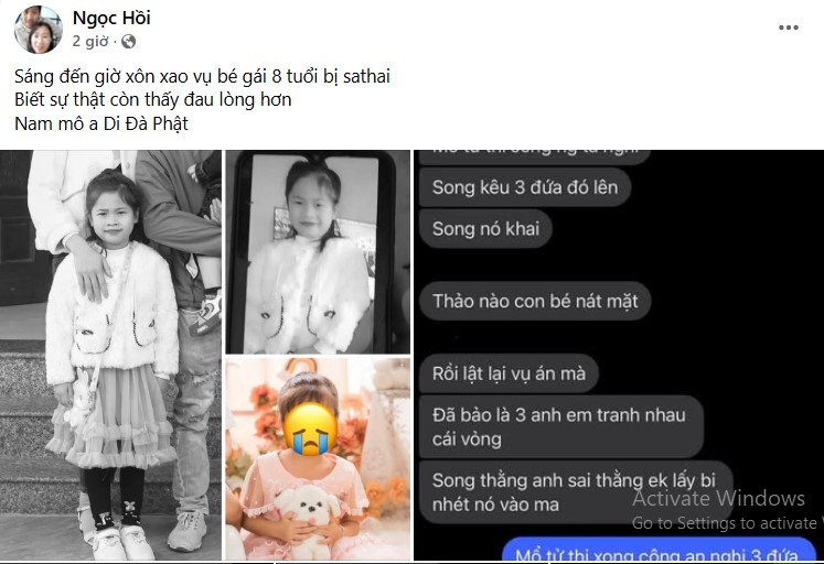 Thông tin chia sẻ trên mạng xã hội về vụ việc bé gái bị sát hại rồi cho vào bao tải phi tang